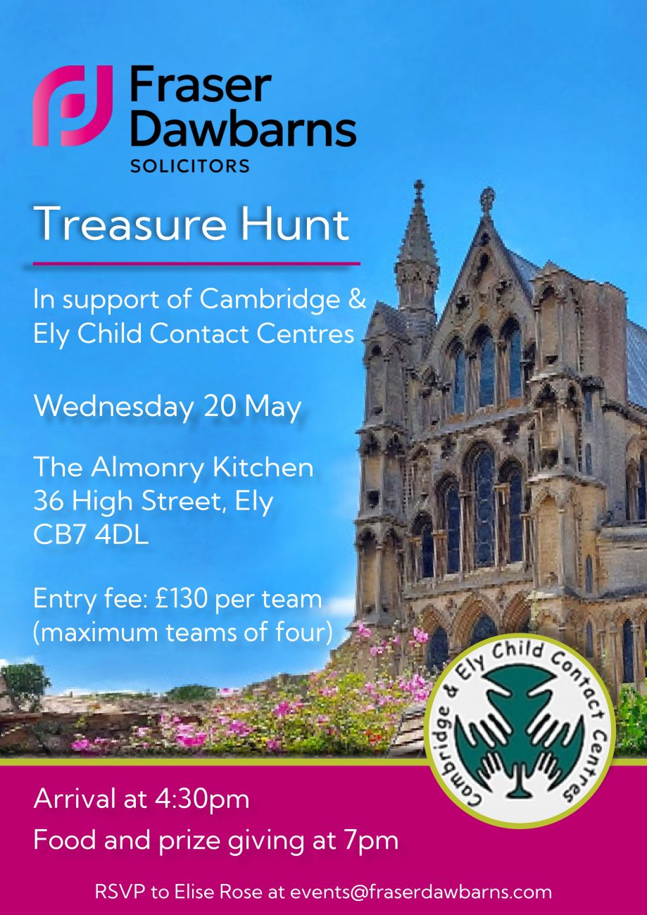 Following on from the success of our charity fundraising Treasure Hunt last May, we will will be hosting this event again on 20 May 2026. This year it will be supporting the new Ely office Charity of the year, Cambridge and Ely Child Contact Centres.
